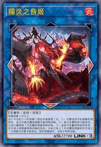 效果怪兽2只以上 这个卡名的②③的效果1回合各能使用1次。 ①:只要这张卡在怪兽区域存在,自己不是炎属性怪兽不能特殊召唤。 ②:自己主要阶段才能发动。从自己墓地把1只炎属性怪兽特殊召唤。 ③:这张卡在墓地存在的状态,对方场上有怪兽特殊召唤的场合,以自己场上1只炎属性怪兽和对方场上1只怪兽为对象才能发动。那些怪兽破坏,这张卡特殊召唤。