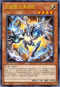 这个卡名的①的方法的特殊召唤1回合只能有1次,②的效果1回合只能使用1次。 ①:这张卡可以把自己的手卡·场上1张卡送去墓地,从手卡特殊召唤。这个方法特殊召唤过的回合,自己不是4阶超量怪兽不能从额外卡组特殊召唤。 ②:这张卡召唤的场合才能发动。从卡组把「内燃雷火沸动机」以外的1只「雷火沸动」怪兽特殊召唤。